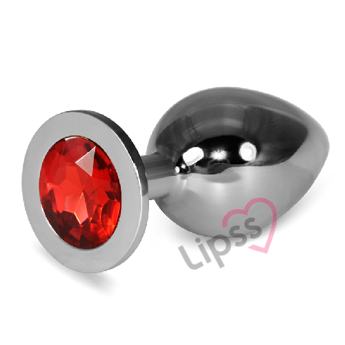 Kırmızı taşlı, büyük boy, kolay ve rahat kullanım sağlayan modelli, metal anal açıcı, anal plug.