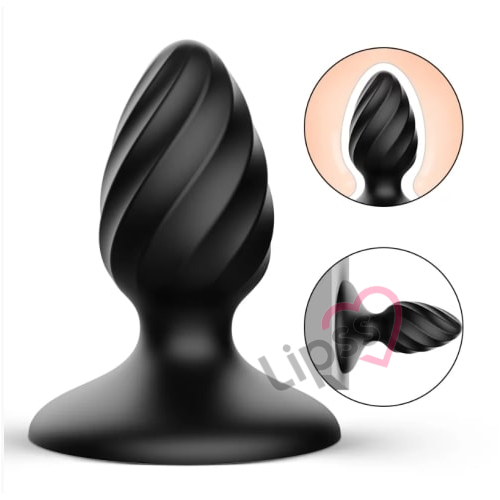 Çok güçlü vantuzuyla sabitleyerek de kullanılabilen, mükemmel ipeksi doku, spiral modelli, siyah realistik anal açıcı plug.